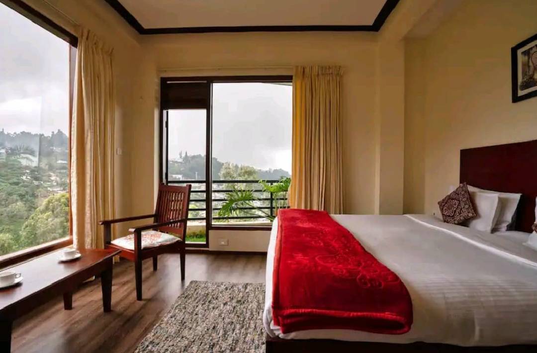 Our Deluxe Rooms with balconies at Heavens Gate are ideal for guests looking to embrace the outdoors during their stay. Each room features a private balcony furnished with comfortable garden furniture, allowing you to relax and take in the stunning views of lush foliage and serene surroundings. Modern furnishings and thoughtfully selected antiques beautifully decorate the rooms for rent in Coonoor, creating a warm and inviting atmosphere. These luxury rooms for rent in Coonoor are equipped with modern amenities, including a Smart Sony 43" TV, a coffee and tea maker, a hair dryer, a heater, and safety lockers, ensuring a very comfortable Homestay experience. The en-suite bathrooms are designed to be clean and bright, offering complimentary toiletries and hot water at all times. The high-quality beds and linens guarantee a restful night’s sleep.